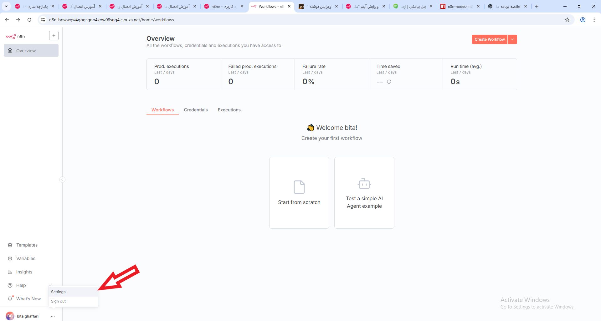 - اول از همه، وارد بخش Overview شوید. در بالای سمت راست صفحه، روی گزینهی Create Workflows کلیک کنید تا یک ورکفلو جدید بسازید.