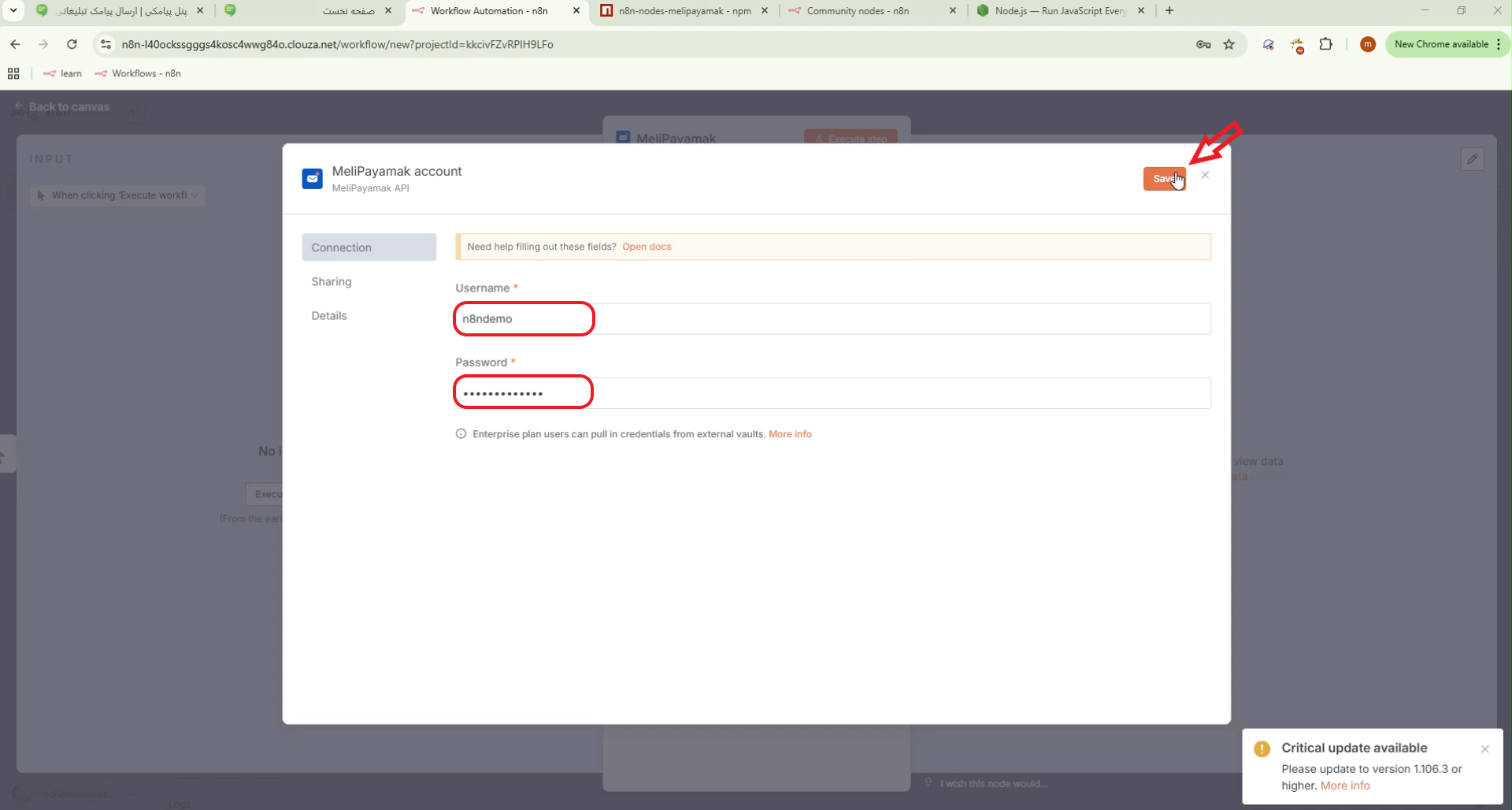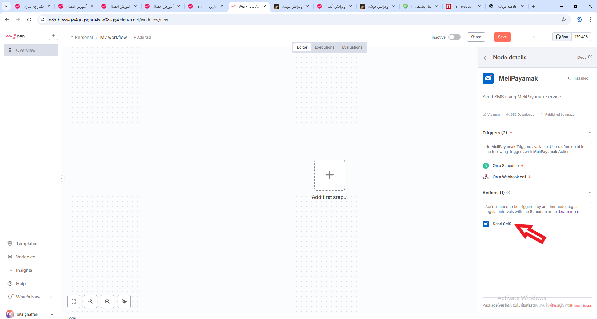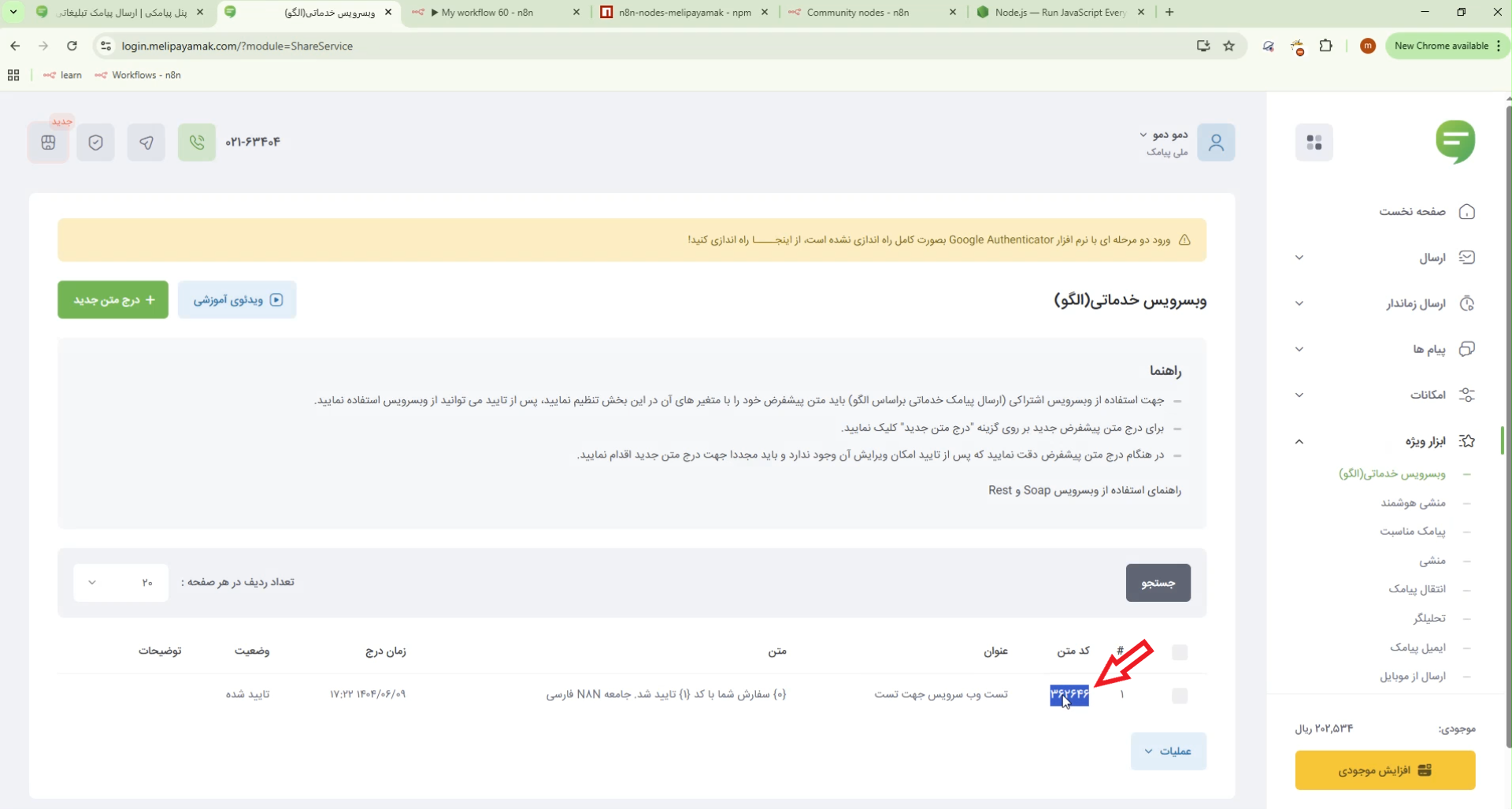۴. ارسال پیامک با MeliPayamak و بررسی خروجی در n8n