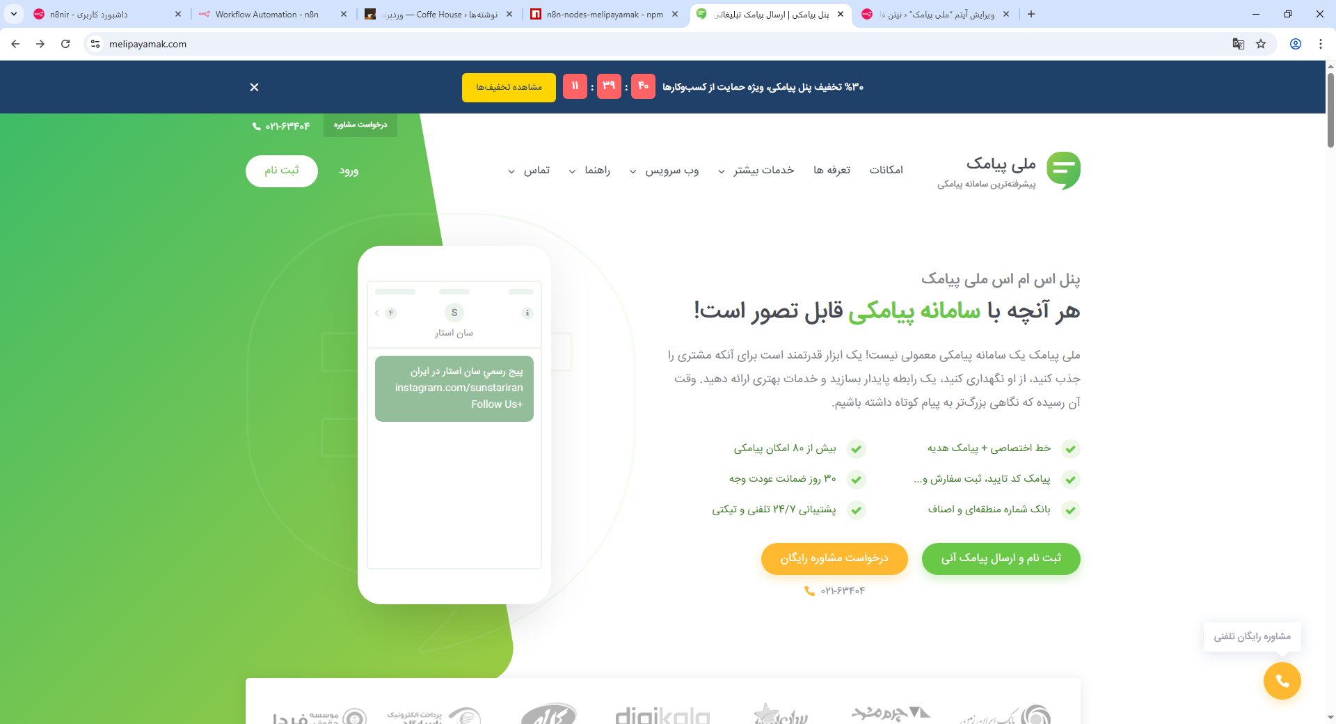 برای بهینهسازی ارسال پیامکهای خود، اتصال ملی پیامک به پلتفرم n8n راهکاری ساده و موثر است. با این اتصال میتوانید پیامکها را به صورت خودکار و هوشمند ارسال کنید و روند کاریتان را بهبود ببخشید. در ادامه، مراحل راهاندازی و استفاده از نود ملی پیامک در n8n را بررسی میکنیم.